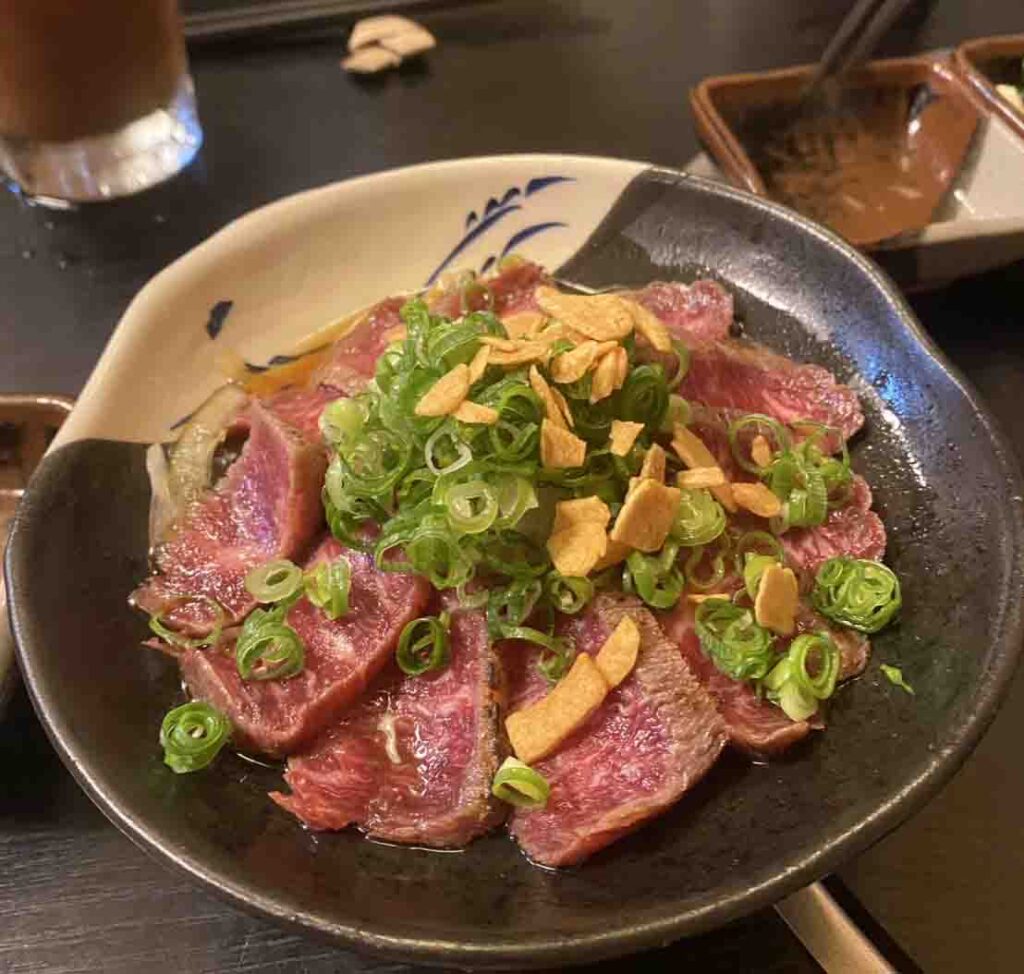 注文したのは、和牛のタタキ、せせり(タレ)、もも(塩)、